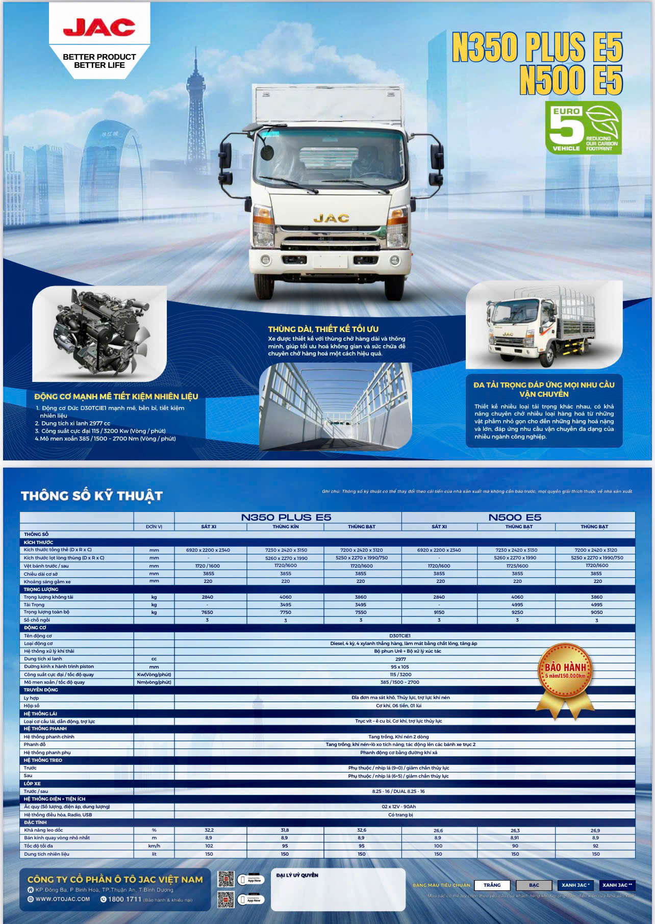 - Bảo hành: 5 năm/150.000 km